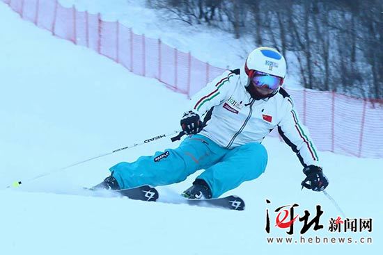 40岁的北京人倪守军雪龄已有16年,被雪友称为“雪疯子”,图为倪守军在滑雪运动中。